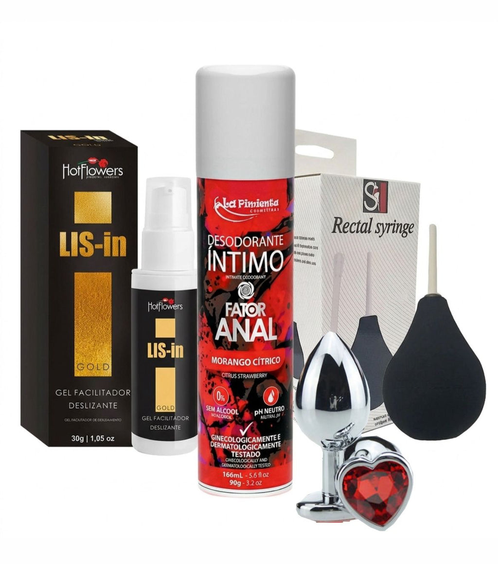 O kit reúne ducha higiênica, plug anal em metal, gel facilitador anal e desodorante íntimo, criando a combinação perfeita para preparar a região, garantir higiene adequada e proporcionar uma experiência mais confortável e prazerosa.