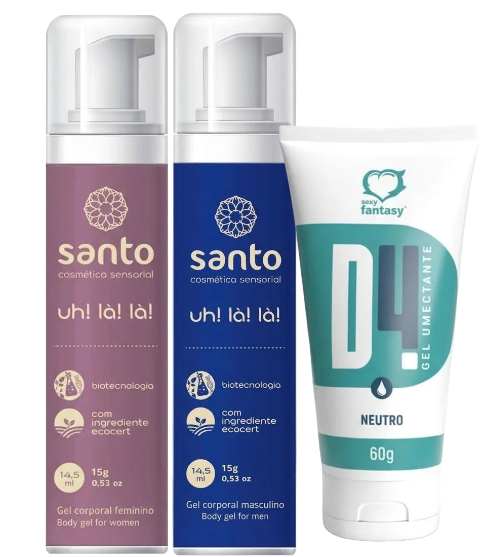 Esse kit combina gel excitante feminino, gel estimulante masculino e lubrificante íntimo neutro, criando a combinação perfeita para estimular os sentidos, aumentar a sensibilidade ao toque e proporcionar uma experiência mais confortável e prazerosa.